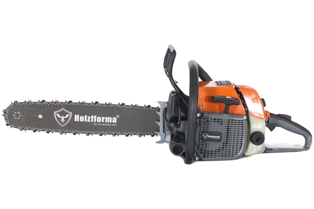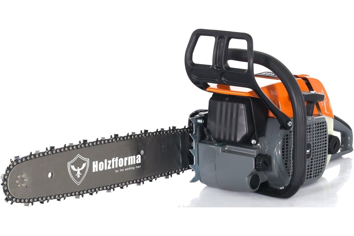 - Антивибрационная система Holzfforma AVS PRO. Высокоэффективная антивибрационная система снижает передачу вибраций двигателя на рукоятки. Пила оснащена антивибрационной системой, которая позволяет снизить вибрационную нагрузку передаваемую от двигателя на рукояти пилы, за счет пружинных демпферов на 35-40% по сравнению с обычными резиновыми.
