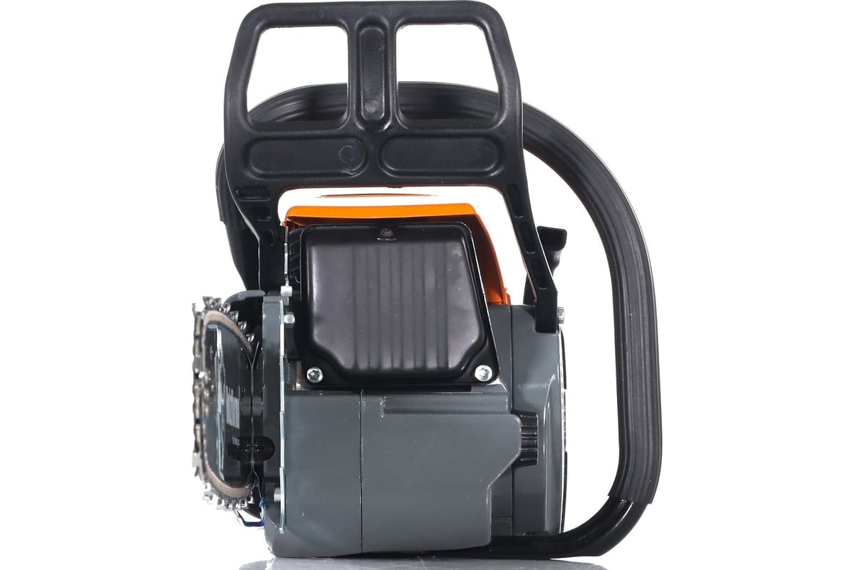 - Однорычажное управление. Такими функциями машины, как холодный и горячий запуск, работа и выключение, управляет отдельный рычаг. Это делает управление особенно удобным и безопасным, так как правая ладонь остается на рукоятке. Управление дроссельной заслонкой, необходимое для холодного и горячего запуска, а также выключения пилы, управляется одним отдельным рычагом. Что делает управление более комфортным и безопасным, так как нет необходимости использовать обе руки, в отличие от дешевых аналогов, не имеющих такой системы управления.