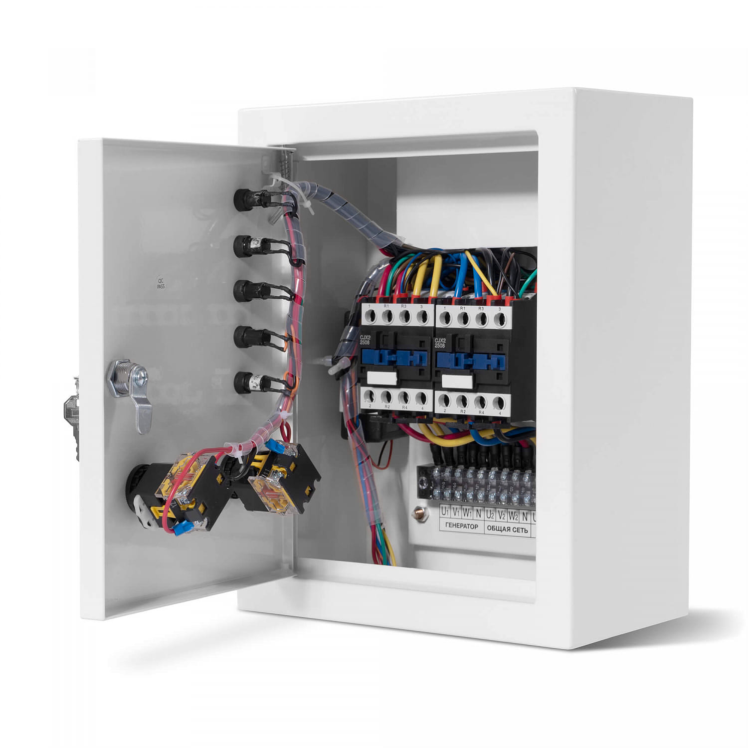 При возобновлении подачи электроэнергии автоматика переводит питание потребителей на внешнюю сеть и отключает генераторную установку.