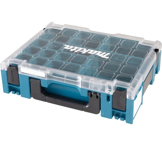 Органайзер MAKITA MakPac 1 (191X80-2) - кейс с 13 отдельными отсеками предназначен для хранения аксессуаров, крепежа и других мелочей. Плотно закрывающаяся прозрачная крышка позволит мелким деталям оставаться на своих местах. Отсеки можно менять местами в необходимых комбинациях, а два типа ручек делают переноску комфортной.
