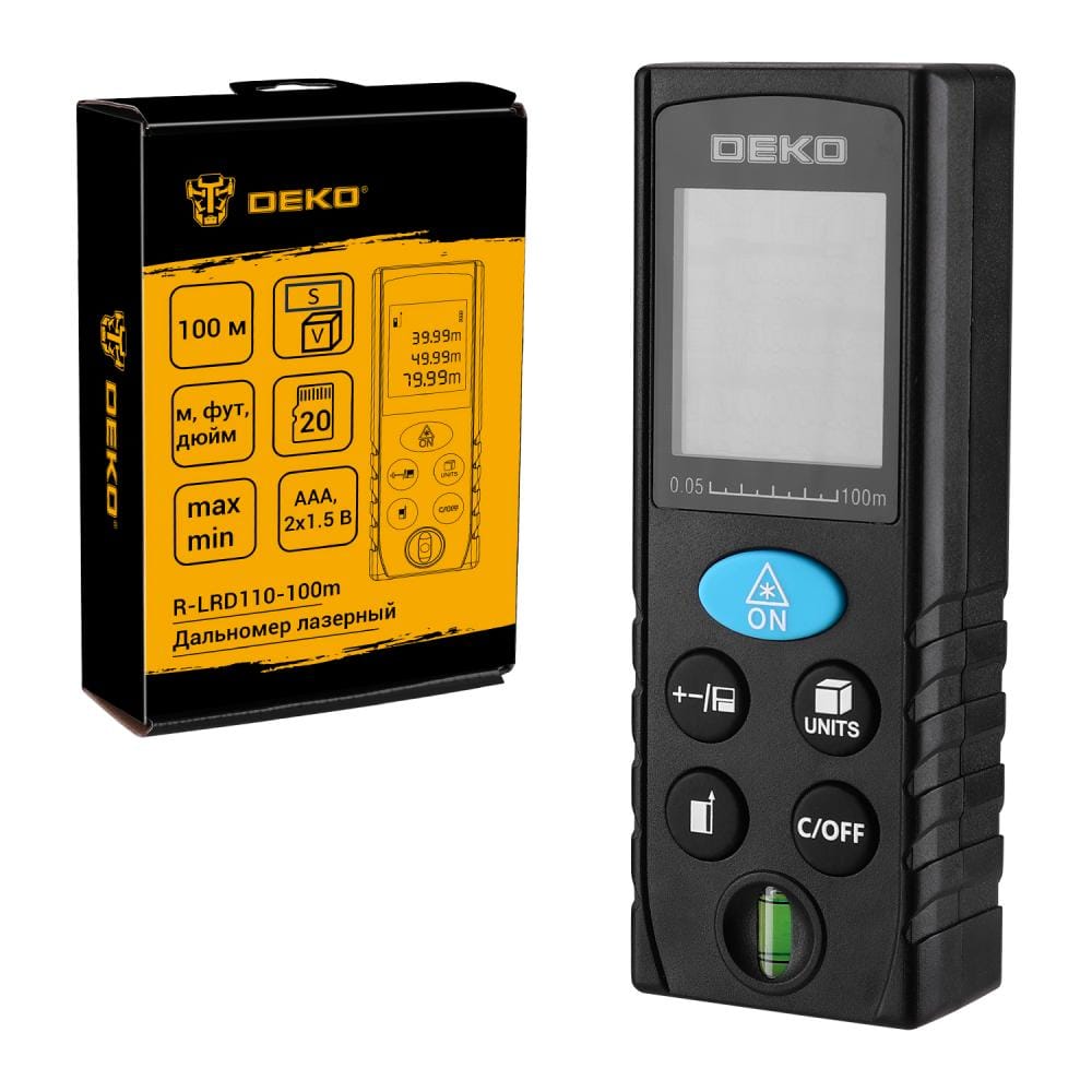 - Дальномер лазерный DEKO R-LRD110-100m предназначен для проведения точных измерительных работ (измерению расстояния, площади и объема).