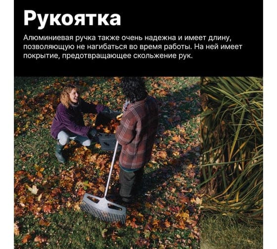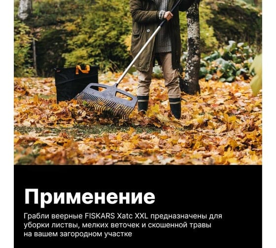 Грабли веерные FISKARS Xact XXL - это удобный инструмент от финских мастеров с высокой продуктивностью. Изделие оснащено большим рабочим элементом с эластичными зубьями, которые эффективно захватывают листья, скошенную траву и любой другой мусор. Грабли выполнены с использованием инновационных решений и качественных материалов. Именно поэтому они обладают такими отличными пользовательскими свойствами. Головка инструмента изготовлена из прочного пластика, поэтому не боится нагрузок. Алюминиевая ручка также очень надежна и имеет длину, позволяющую не нагибаться во время работы. А для большего удобства на ней присутствует покрытие предотвращающее скольжение рук.