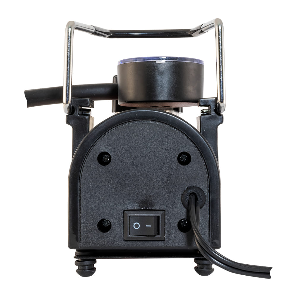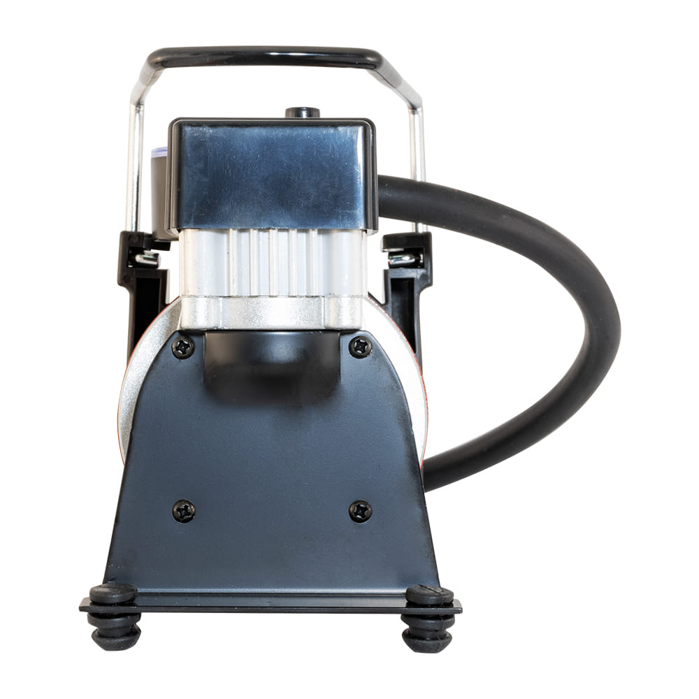 - Металлический корпус и ручка обеспечивают высокую прочность компрессора;