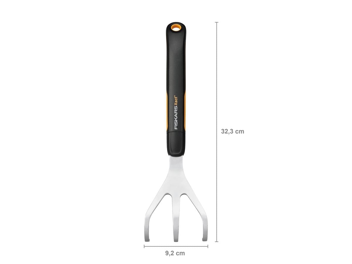 Рыхлитель FISKARS Xact подходит для посадки растений, культивации земли и уходу за небольшими кустарниками. Рукоятка покрыта материалом SoftGrip, что обеспечивает комфортный захват. Удлиненная рукоятка служит дополнительном рычагом при необходимости. Петля на рукоятке предназанчена для удобного хранения. Зубцы выполнены из нержавеющей стали.