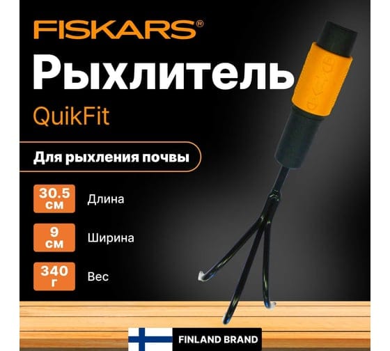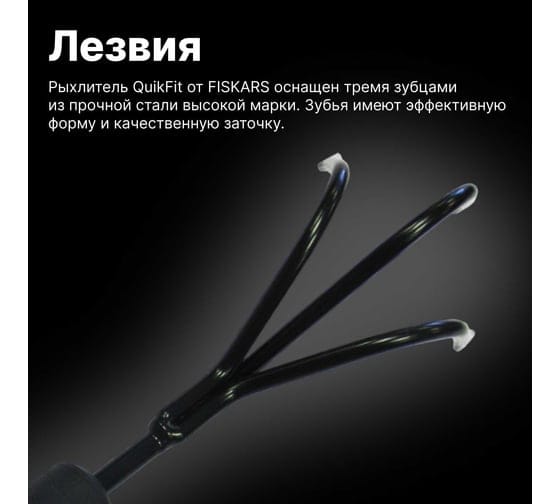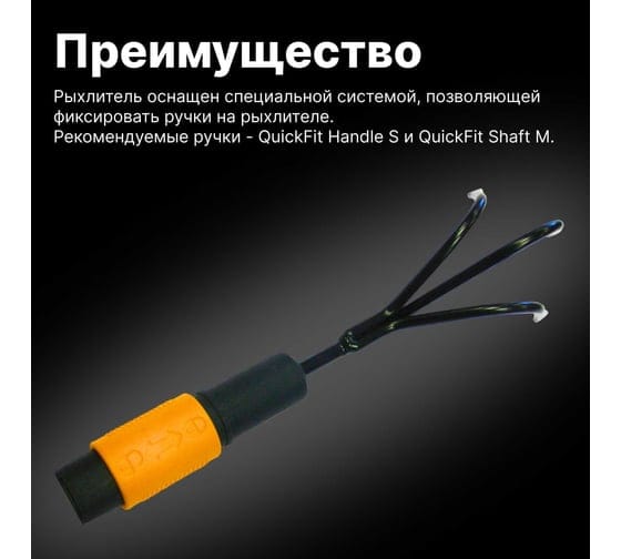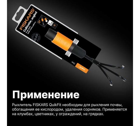 Рыхлитель FISKARS QuikFit необходим для рыхления почвы, обогащения ее кислородом, удаления сорняков. Применяется на клумбах, цветниках, у ограждений, на грядках. Инструмент имеет 3 зубца из прочной стали, оснащен специальной системой, позволяющей фиксировать ручки на рыхлителе. Рекомендуемые ручки - QuickFit Handle S и QuickFit Shaft M.