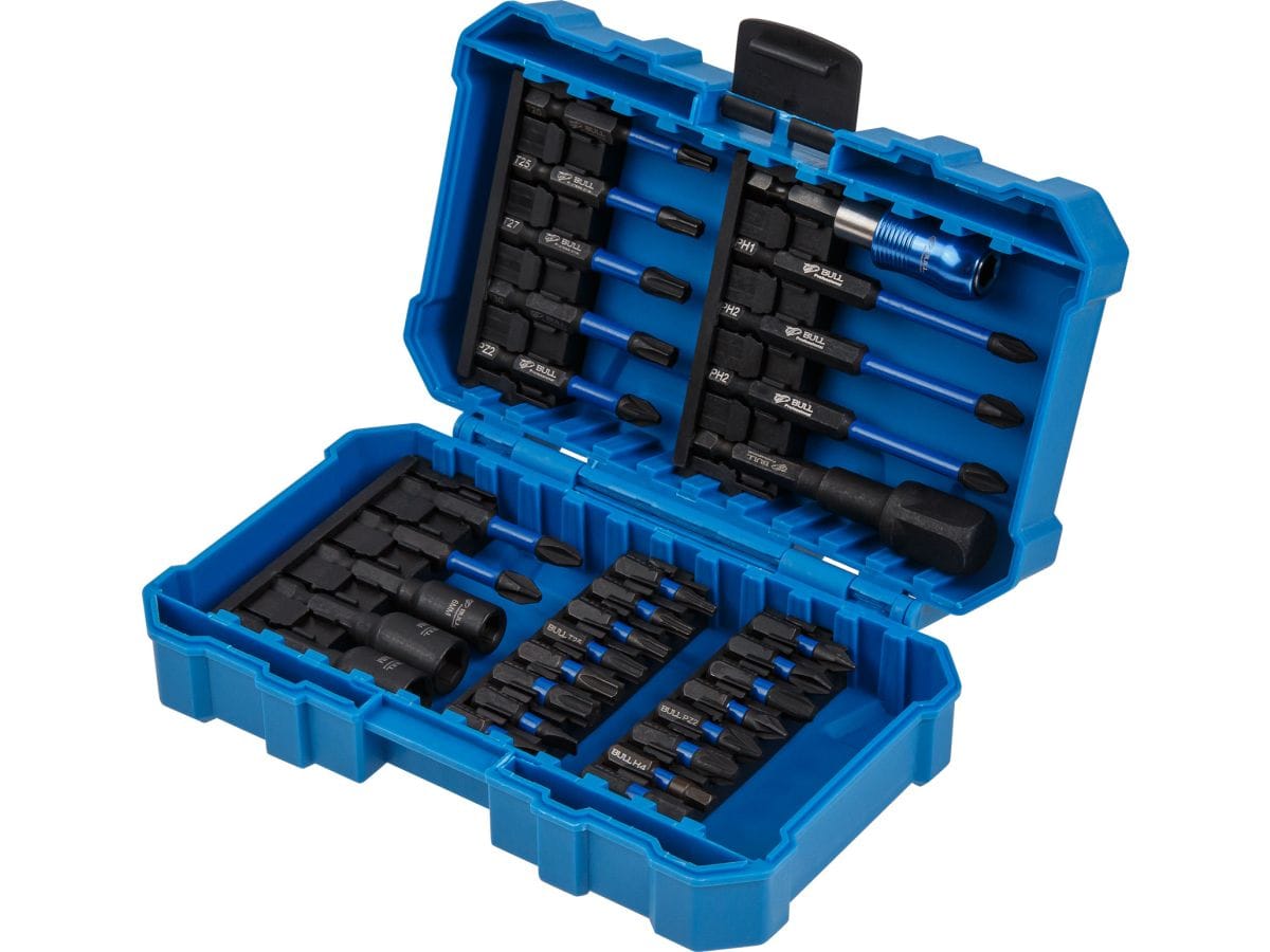 Набор бит ударных BULL Impact IMB 31 Multi предназначен как для тяжелых нагрузок при работе ударными винтовертами и шуруповертами, так и для стандартных работ с крепежом разного вида. Биты оснащены торсионной зоной, для работы с высокими крутящими моментами и в режиме тангенциального удара. Кроме того, снижается давление на наконечник биты и снижается риск поломки, что значительно увеличивает ресурс оснастки. Изготовлены из высоколегированной стали твердости 58-62 HRC. Кроме всего прочего, в комплект поставки входят удлиненные биты 75 мм, а так же переходник с 1/4" на 1/2". Быстросъемный магнитный держатель имеет надежную систему фиксации биты и механизм быстрого высвобождения. Надежный пластиковый футляр и четкая фиксация биты внутри обеспечит удобство транспортировки.