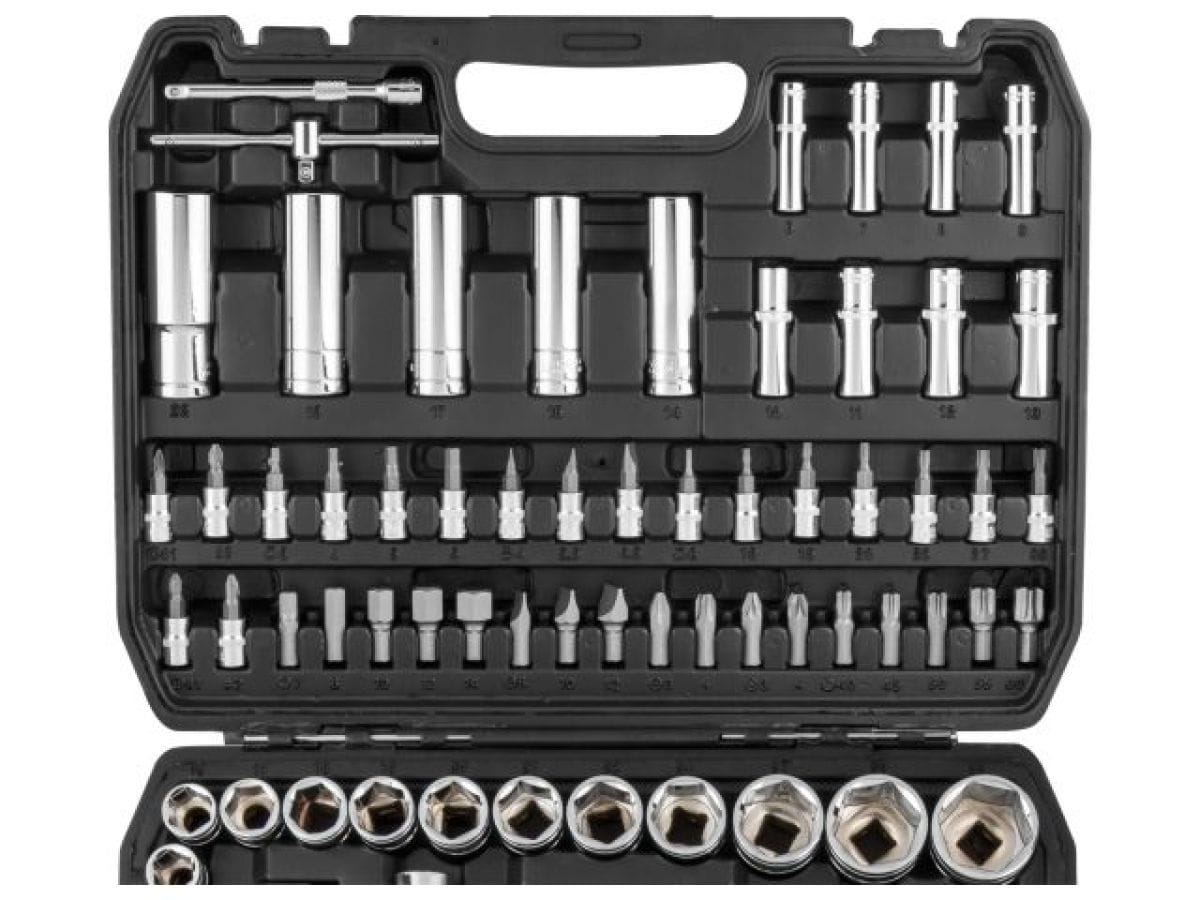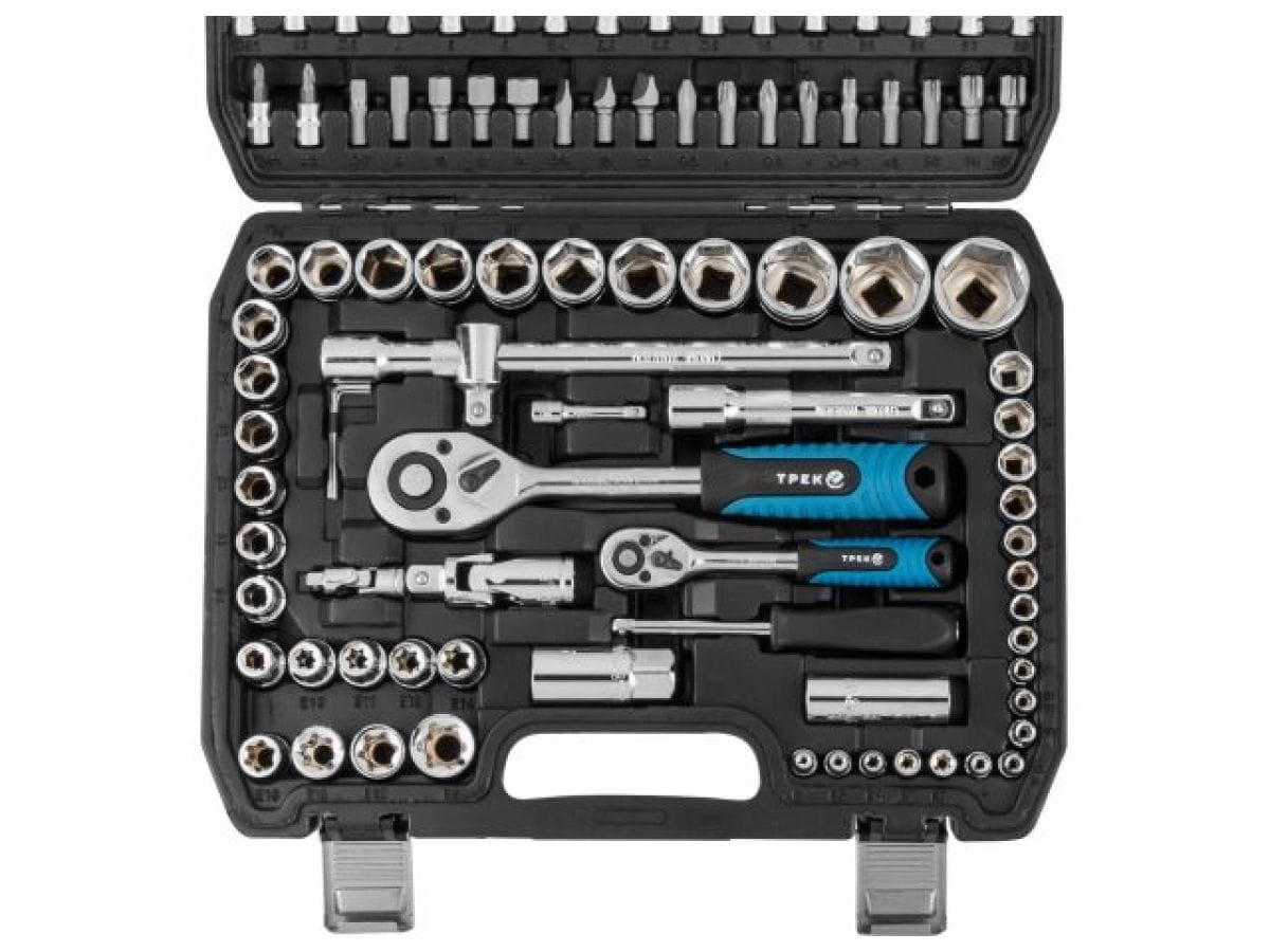 Набор инструментов 1/4", 1/2" 6 граней 108 предметов ТРЕК (TR19108) - многофункциональный набор, предназначен для ремонта и обслуживания автомобиля. Рабочие части изготовлены из инструментальной стали. Финишная обработка: зеркальная полировка. Трещоточный механизм: 24 зуба. Кейс из прочного противоударного пластика, с металлическими замками.