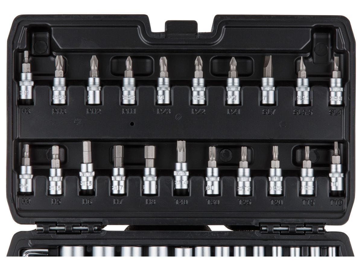Набор инструментов 1/4" 6 граней 46 предметов PRO STARTUL Stuttgart (PRO-046S) - многофункциональный набор, предназначенный для ремонта и обслуживания автомобиля, а также для выполнения других слесарных работ. Рабочие части изготовлены из хромованадиевой стали, устойчивы к коррозии. Финишная обработка головок: сатинирование. Профиль головок: шестигранный. Трещоточный механизм: 72 зуба. Кейс выполнен из прочного противоударного пластика, с металлическими замками