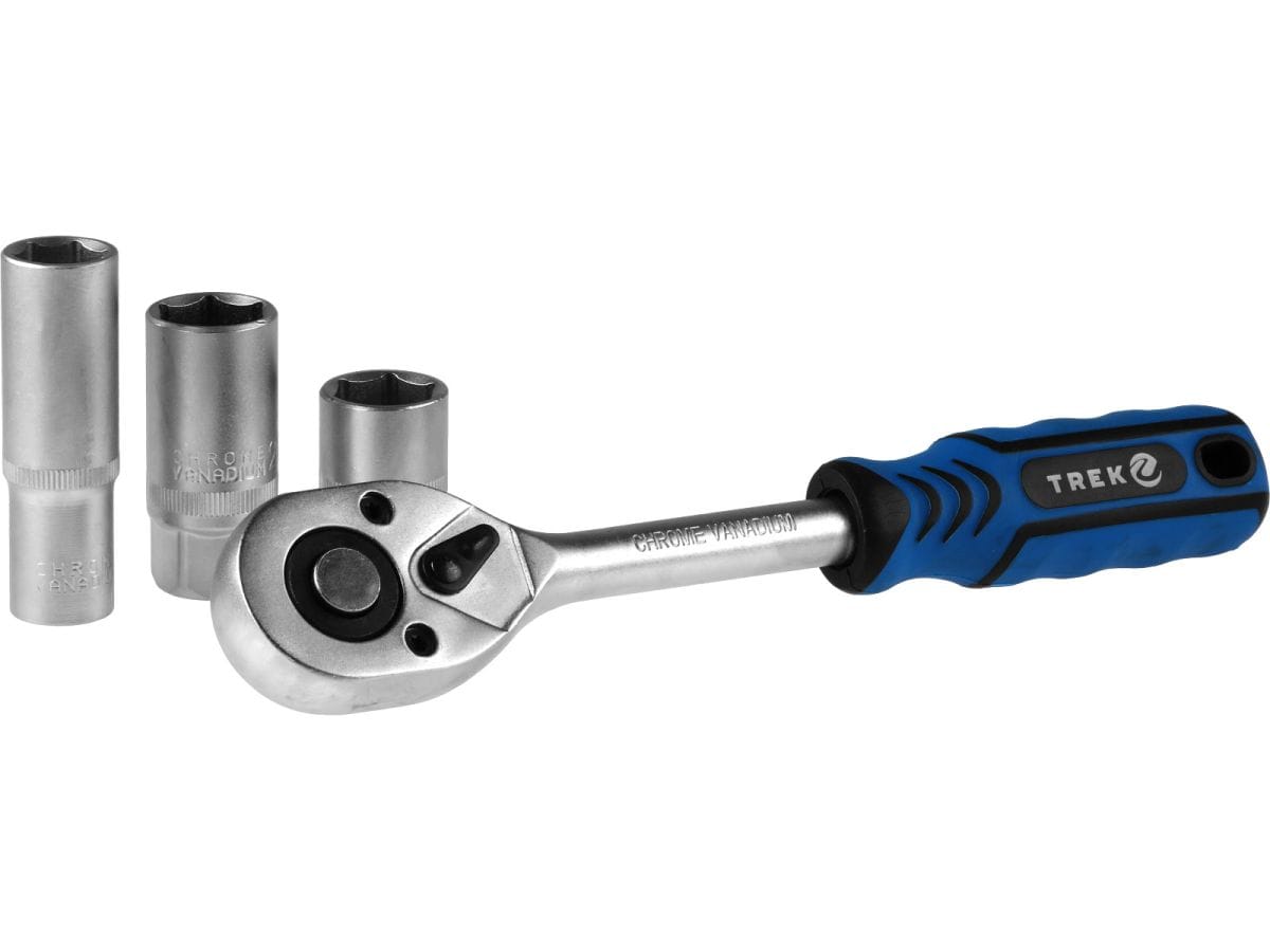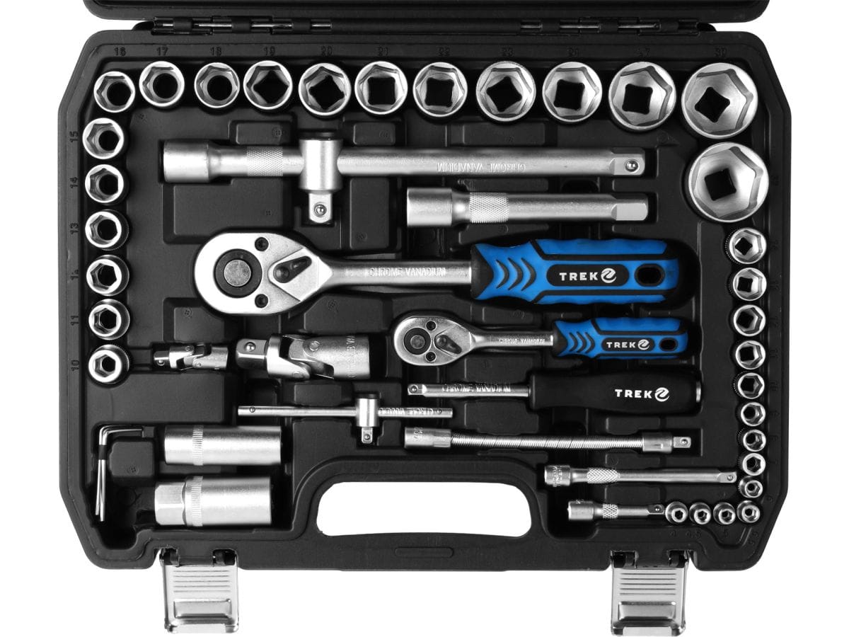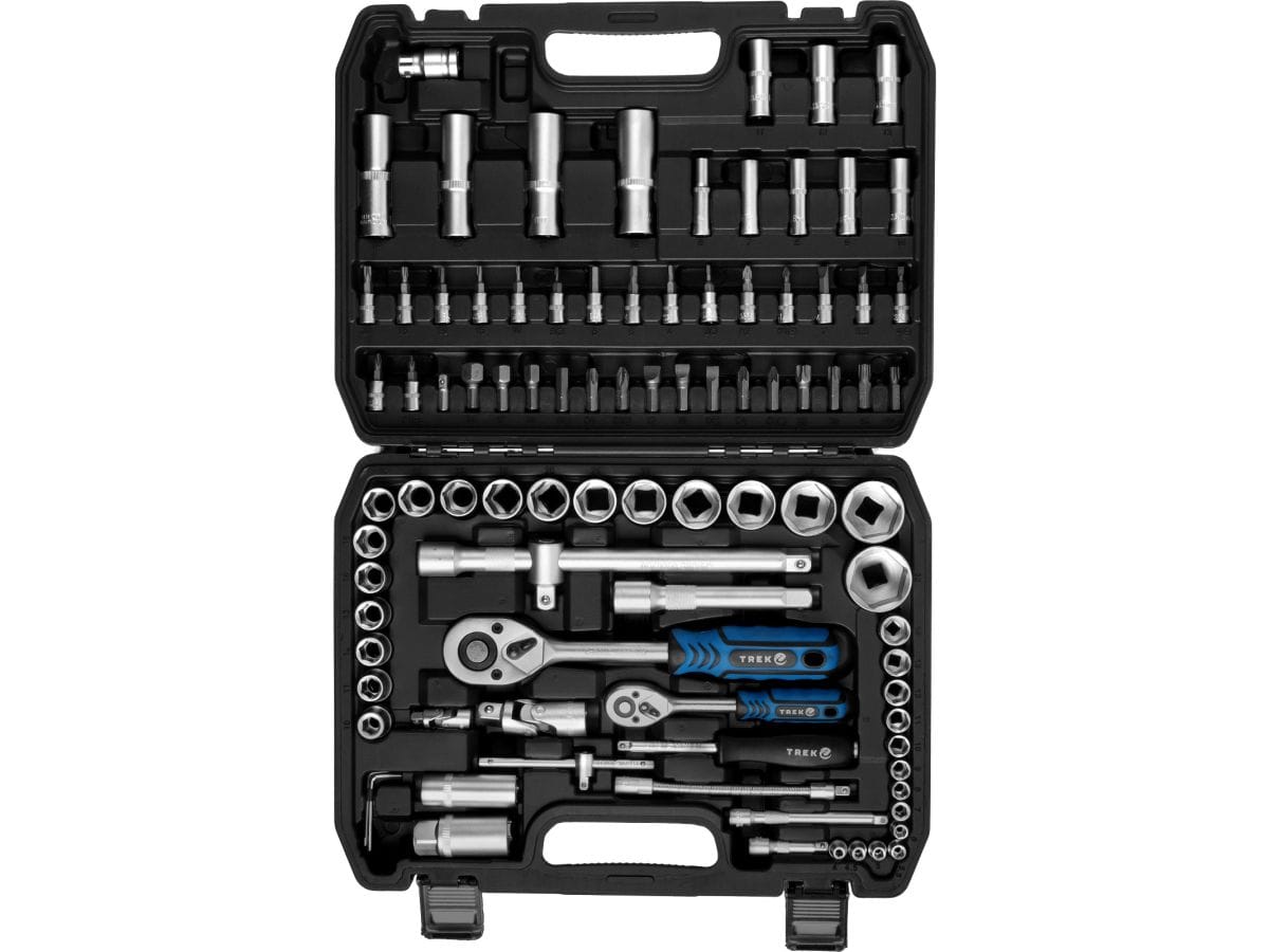Набор инструментов 1/4", 1/2" 6 граней 94 предмета TREK (TR22094) — это многофункциональный комплект, предназначенный для ремонта и обслуживания автомобилей. Этот набор включает в себя инструменты с размерами 1/4" и 1/2", что делает его универсальным для различных задач. Рабочие части набора изготовлены из углеродистой стали, что обеспечивает высокую прочность и долговечность инструментов. Финишная обработка в виде сатинирования придает им не только эстетичный вид, но и защищает от коррозии. Все головки имеют шестигранный профиль, что обеспечивает надежное сцепление с крепежом и минимизирует риск срыва граней.
