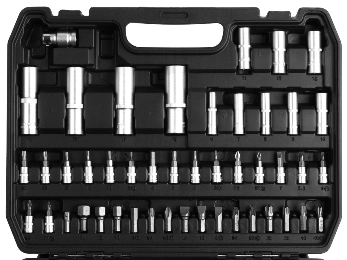 Набор оснащен трещоточным механизмом с 45 зубьями, который обеспечивает плавное и быстрое выполнение работы, позволяя легко работать в ограниченных пространствах. Инструменты поставляются в прочном противоударном пластиковом кейсе с металлическими замками, который надежно защищает содержимое от повреждений и обеспечивает удобство хранения и транспортировки.