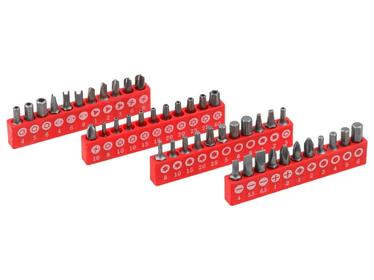 | Биты-насадки 1/4" | Hex 3, 4, 5, 6 мм Tamper Hex HH3, HH4, HH5, HH6 Torx T8, T10, T15, T20, T25 Tamper Torx TT8, TT10 - 2 шт., TT15 - 2 шт., TT20 - 2 шт., TT25 - 2 шт., TT40 SL4, SL5.5, SL6 PH1, PH2 PZ1, PZ2 U4, U6, U8 SQ1, SQ2 TW1, TW2, TW3 TS6, TS8, TS10 |