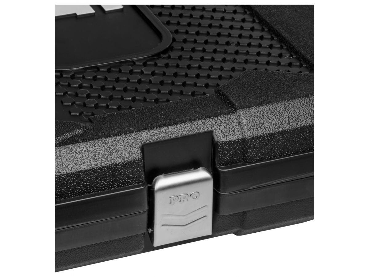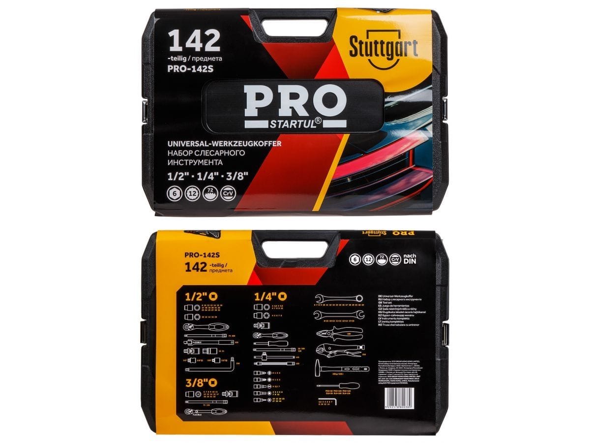 Набор инструментов 1/4", 3/8", 1/2" 6 граней 142 предмета PRO STARTUL Stuttgart (PRO-142S) - это многофункциональный набор, предназначенный для ремонта и обслуживания автомобиля, а также для выполнения других слесарных работ. Рабочие части изготовлены из хромованадиевой стали, устойчивы к коррозии. Кейс выполнен из прочного противоударного пластика, с металлическими замками.