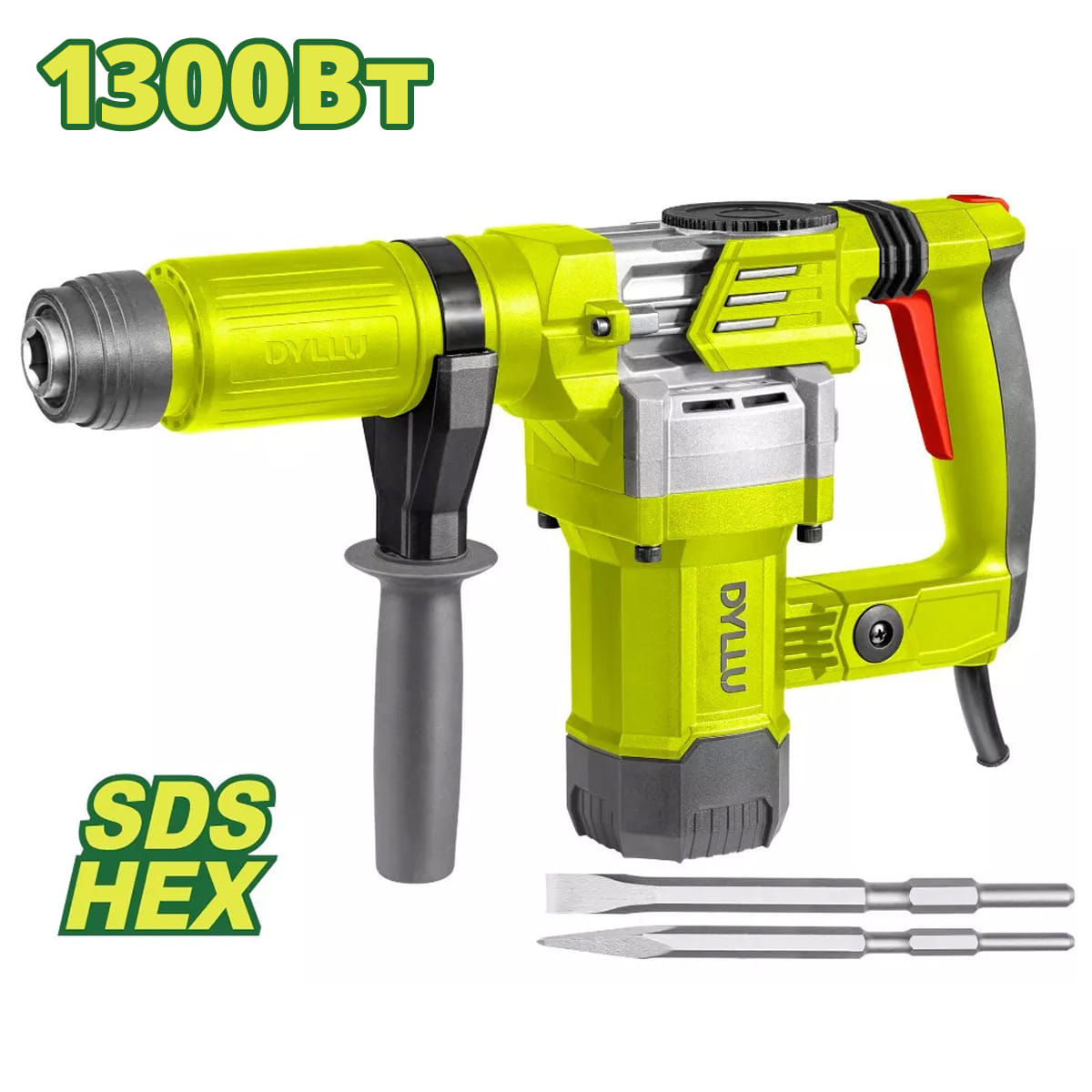 - Отбойный молоток DYLLU DTDB1D45, с силой единичного удара 15 Дж, станет не заменимым помощником при проведении строительных или демонтажных работ.