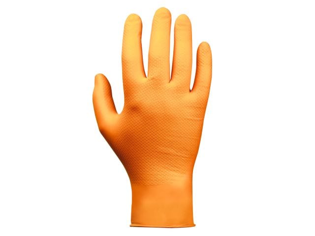 Оранжевые нескользящие нитриловые перчатки Jeta Safety модель NATRIX, длина 240мм, толщина 0,15мм, упаковка 50 шт.