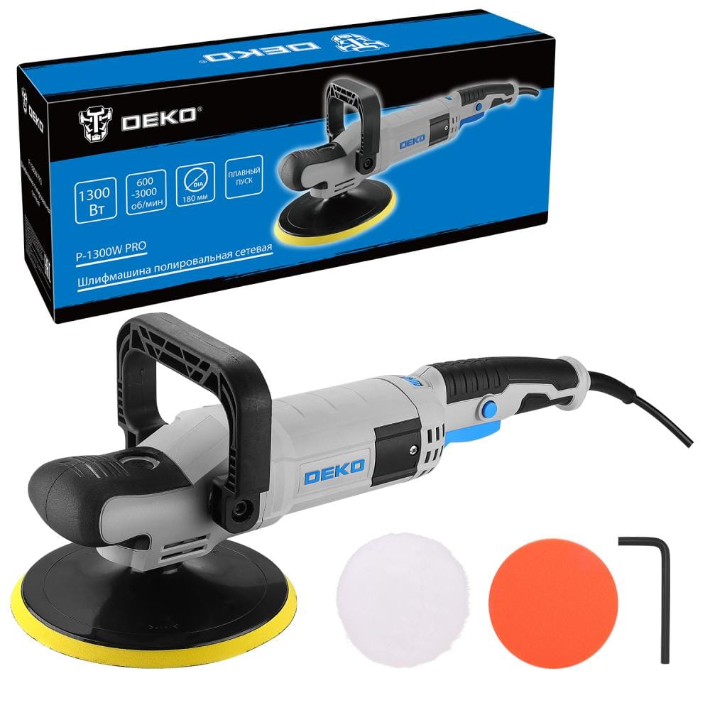 - Шлифмашина полировальная сетевая DEKO P-1300W PRO предназначена для полирования и шлифования лакокрасочных, полимерных и прочих покрытий.
