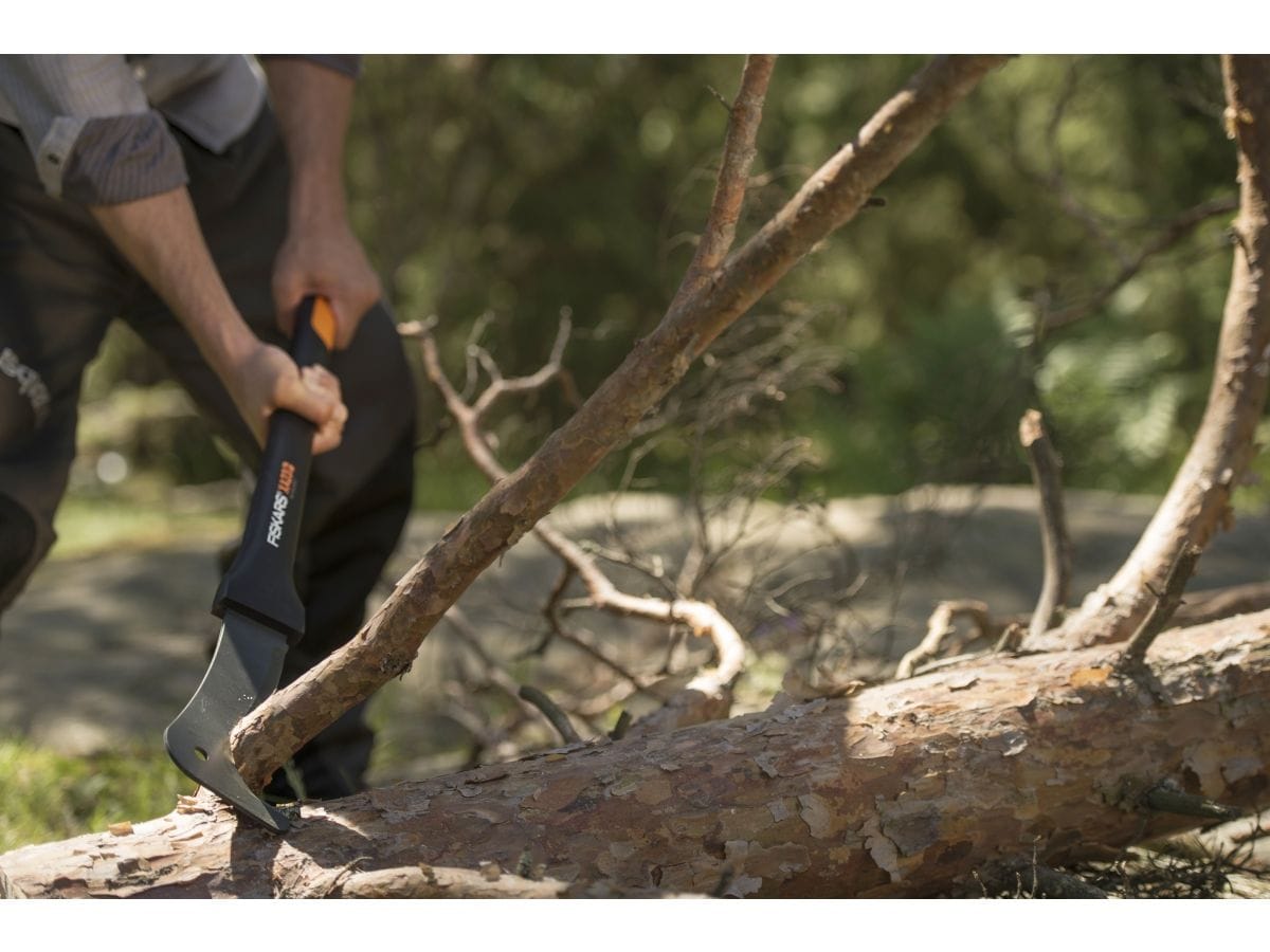 Секач для сучьев ХA23 FISKARS для рубки средних веток и маленьких деревьев, для расколки дров на щепки. Угол для заточки лезвия 30°. Благодаря полой легкой рукоятке из материала FiberCompT удобно работать одной рукой. Покрытие рукоятки из нескользящего материала SoftGripT обеспечивает безопасность во время рубки. Усовершенствованная форма лезвия спроектирована для большей эффективности при рубке мелких ветвей.
