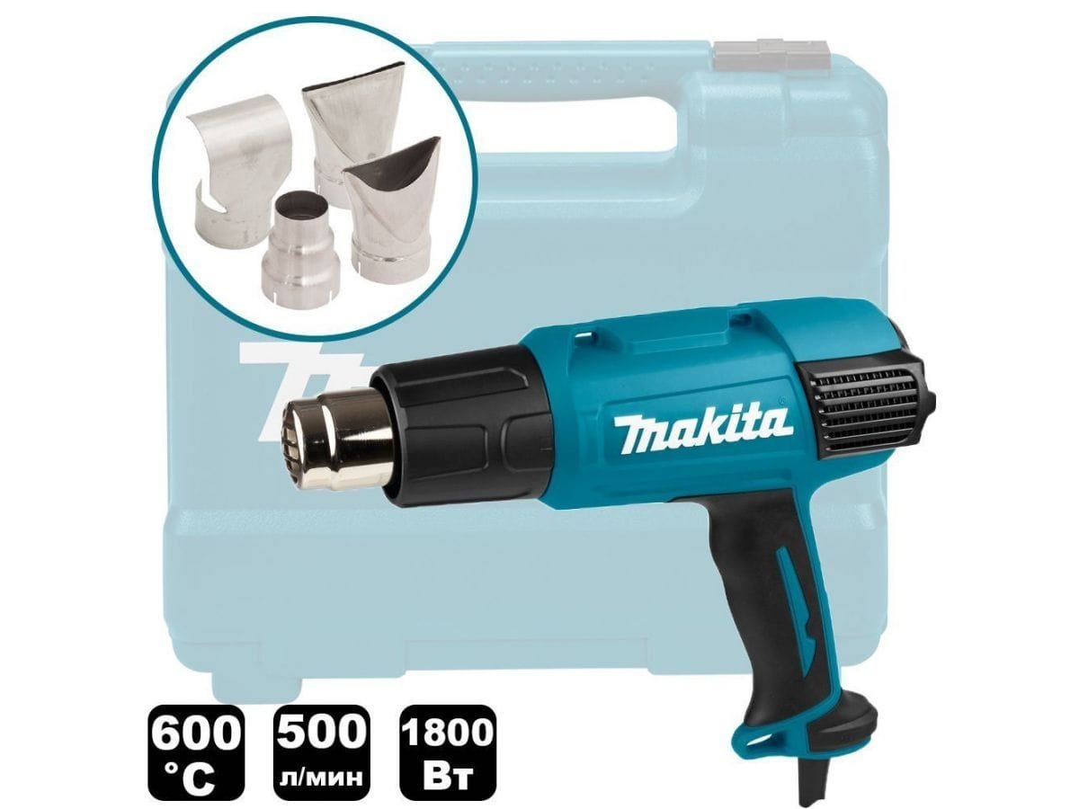 Термовоздуходувка в чем. + набор сопл (1800 Вт, 2 скор., 50-600 °С, ступенч. рег.) MAKITA HG 6031 VK