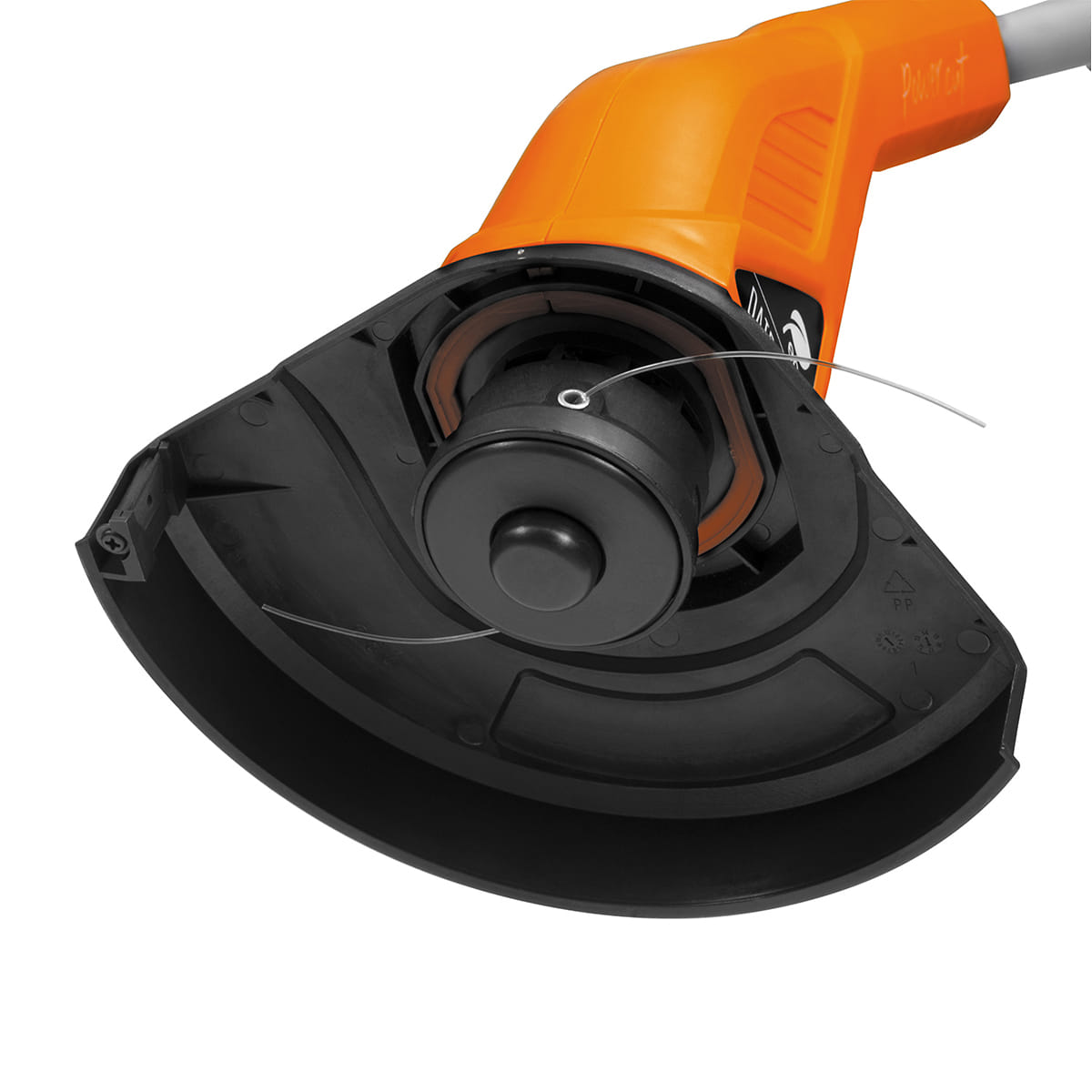 ✔ Защитный кожух из ударопрочного ABS-пластика надежно защищает оператора от получения травм в случае попадания в режущий механизм твердых предметов